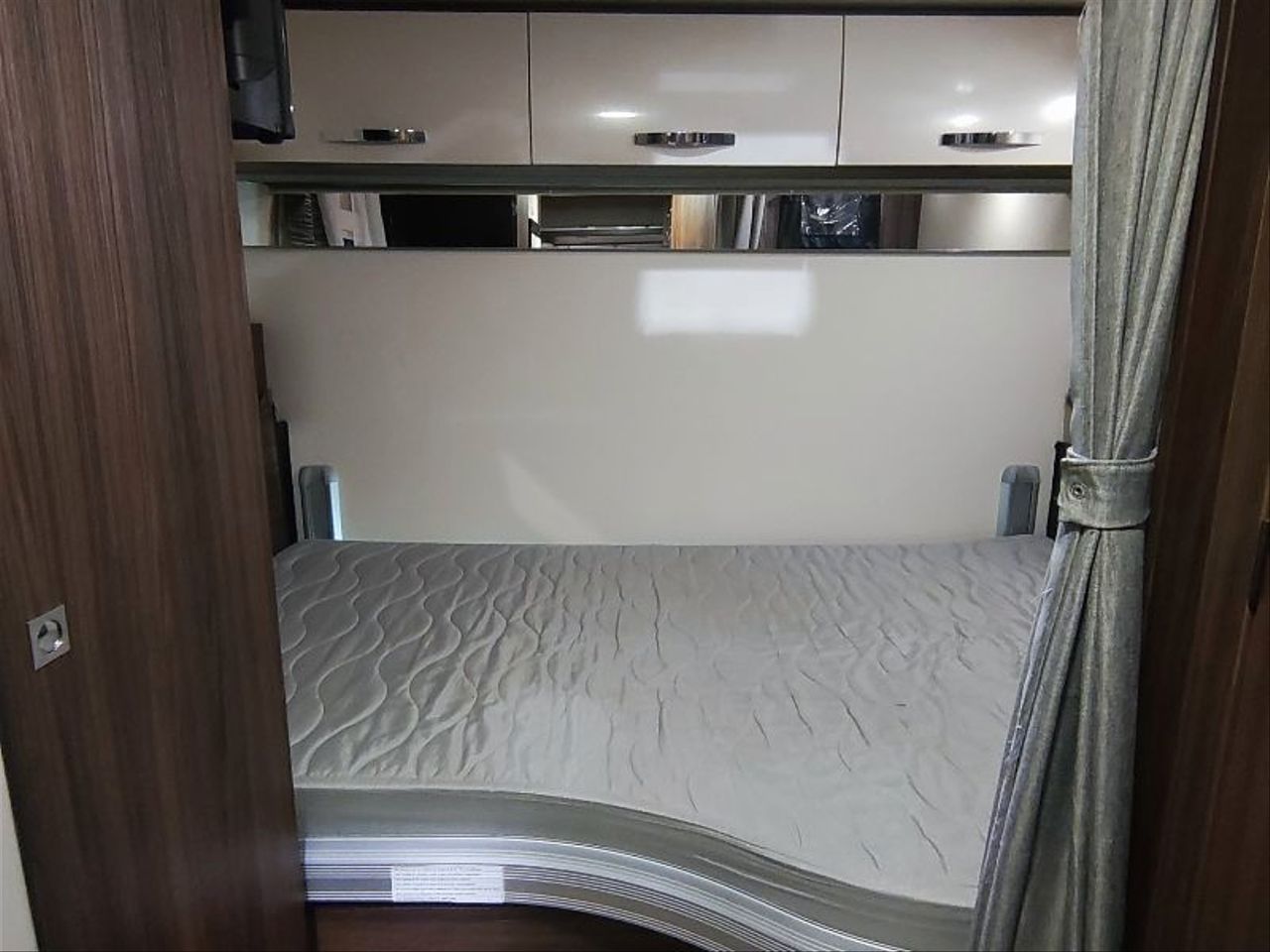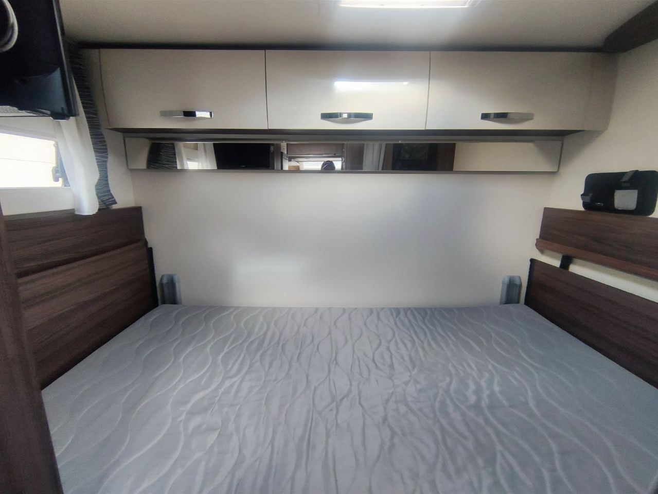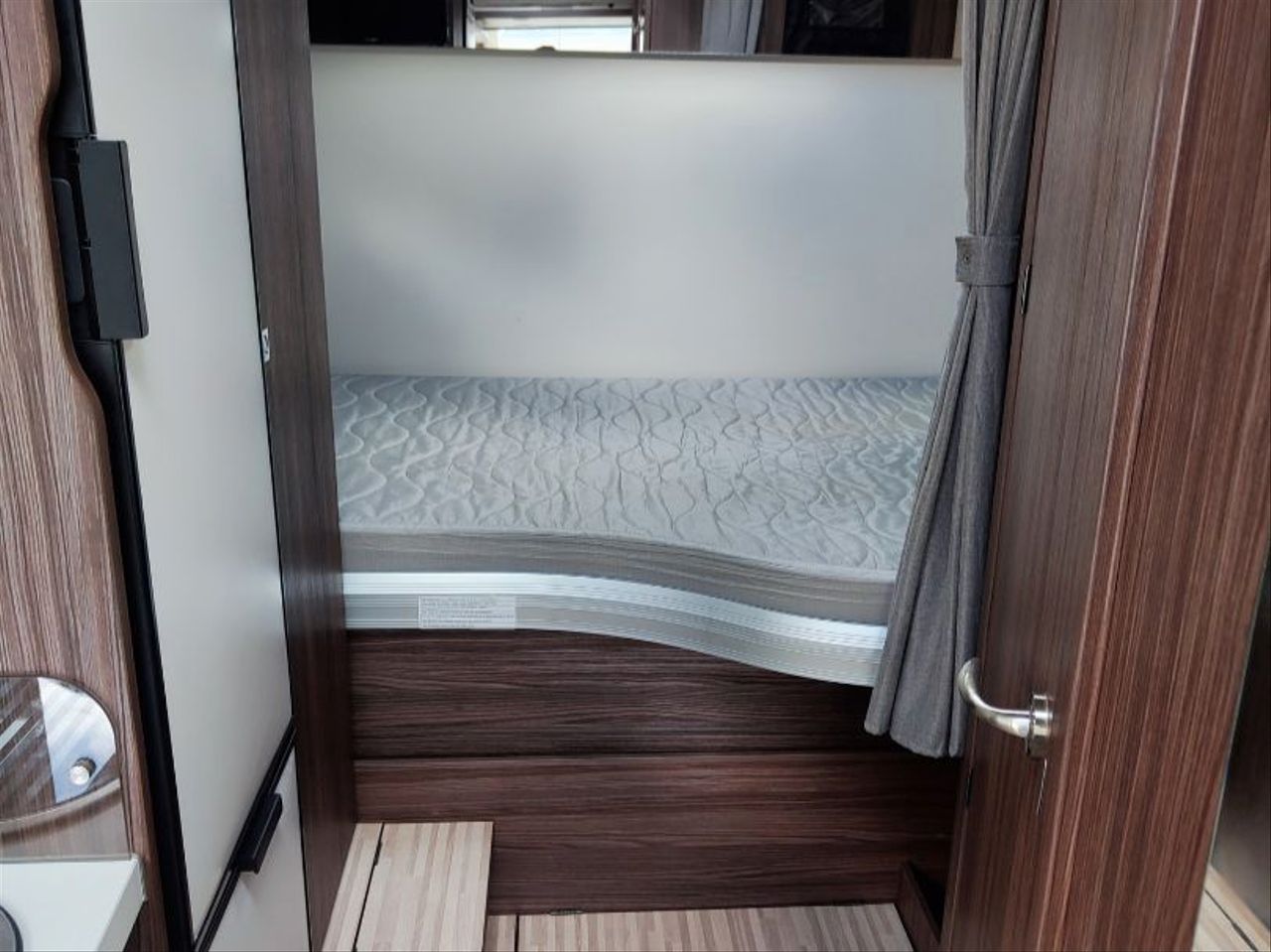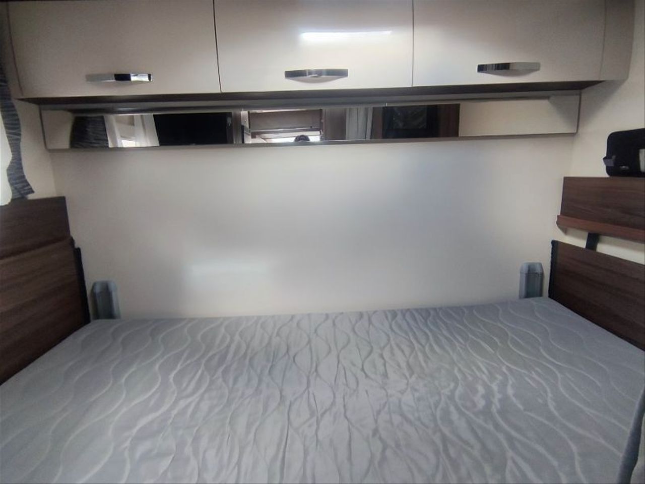 Distribución de cama TRANSVERSAL TRASERA de 1,40 mts, ELEVABLE MANUALMENTE.