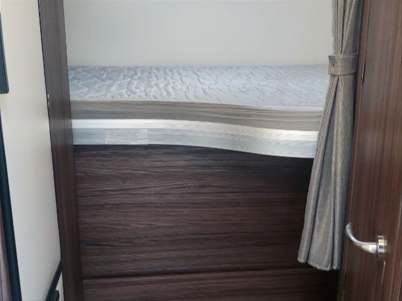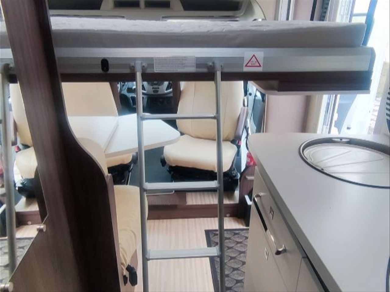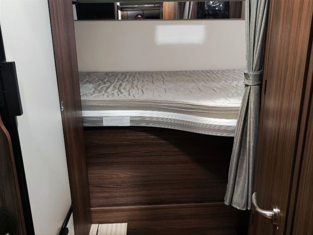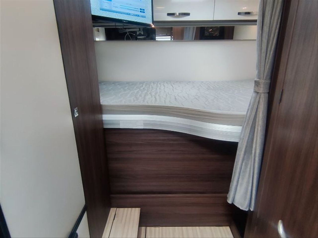 Distribución de cama TRANSVERSAL TRASERA de 1,40 mts, ELEVABLE MANUALMENTE.