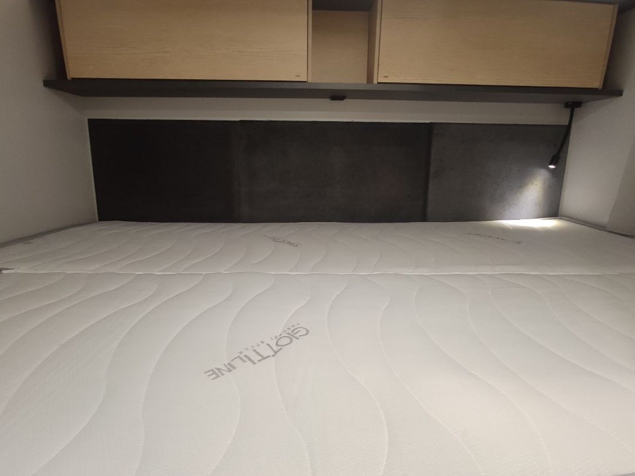 Configuración de cama transversal trasera y cama individual electrica sobre salon