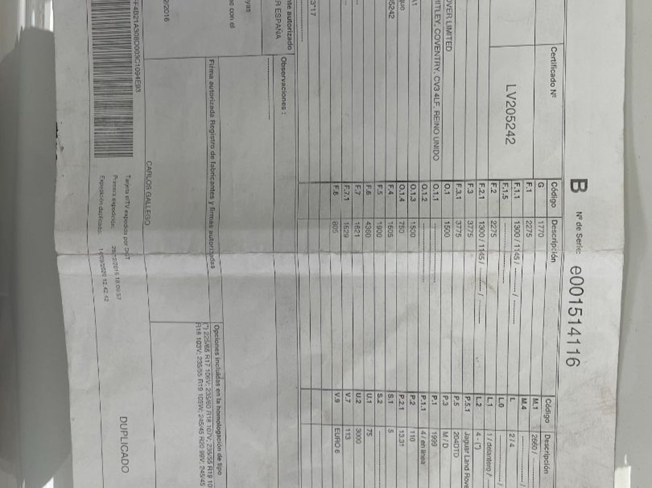 RANGE ROVER EVOQUE, 164.552KM, AÑO: 12/2016, MANUAL 6 VELOCIDADES.