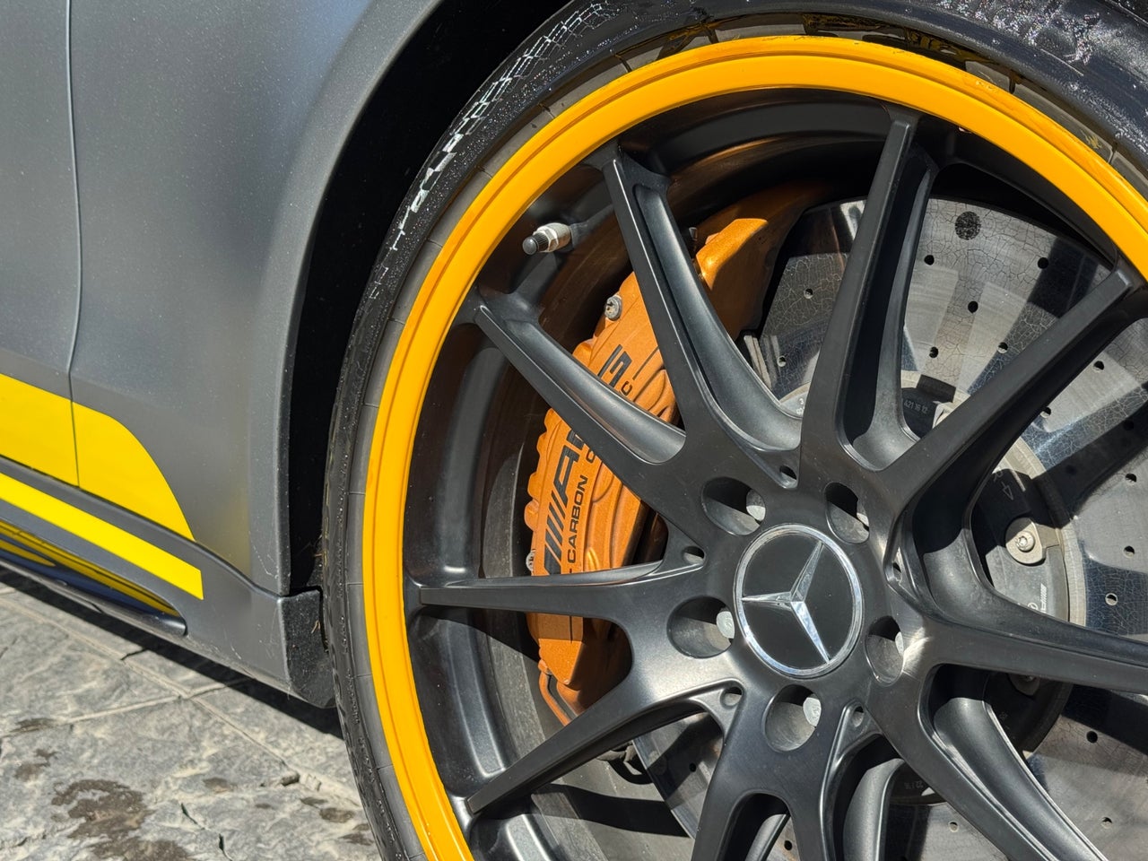 -Llantas AMG con decoración en amarillo