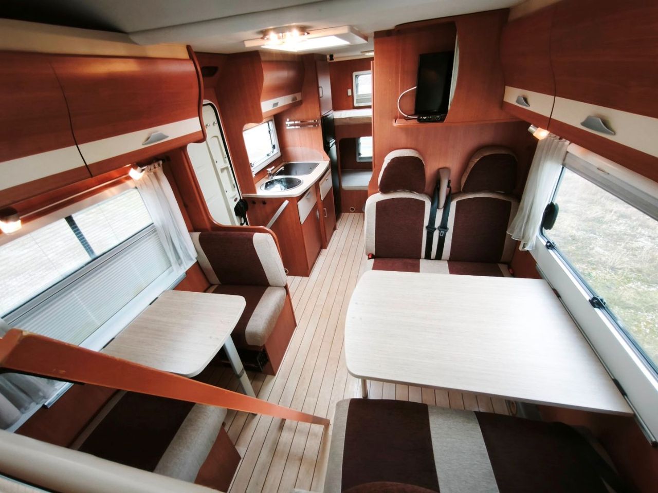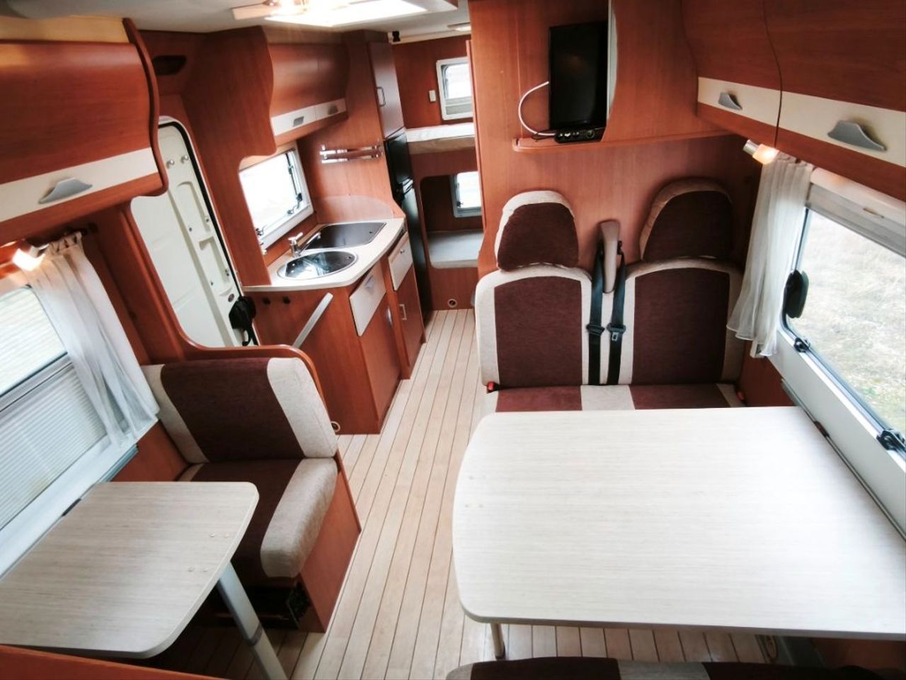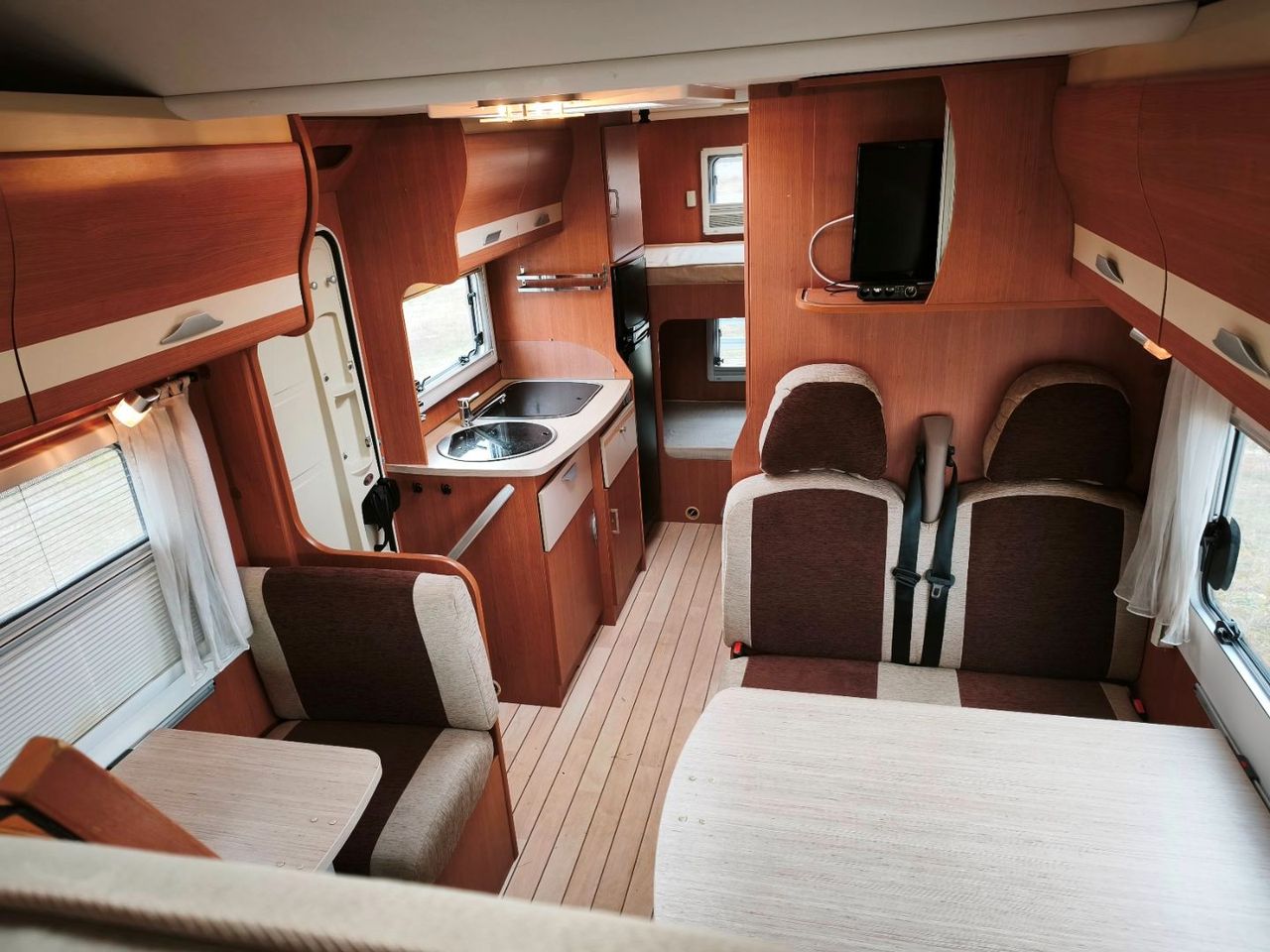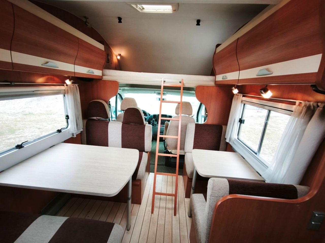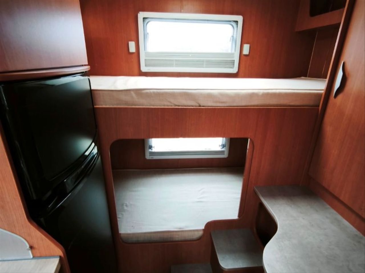 literas traseras (2) + cama capuchina doble (2) + cama salón grande doble (2)
