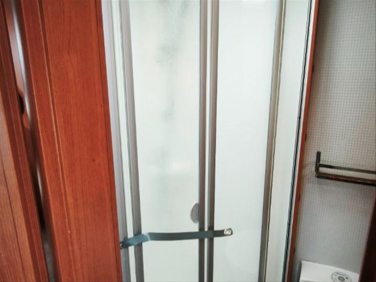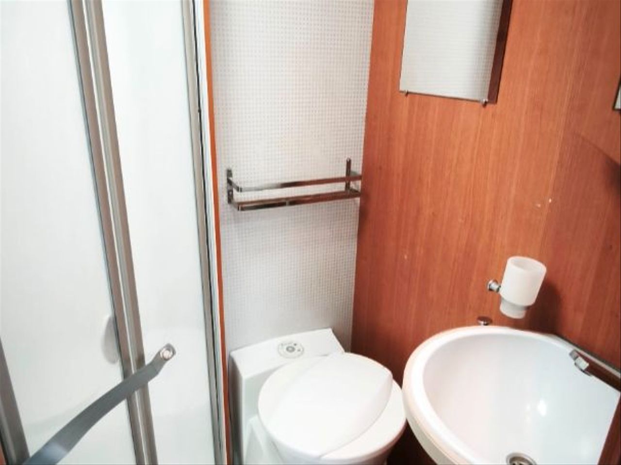 baño con lavabo, wc y ducha separada por mampara