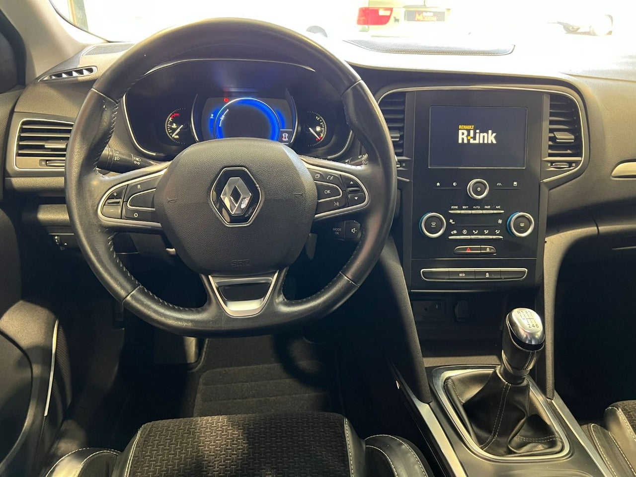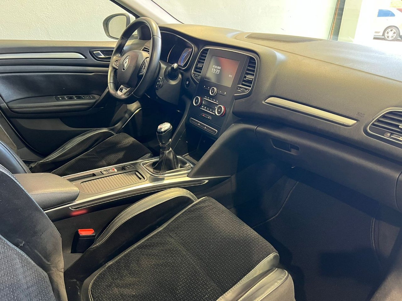 El interior combina funcionalidad y confort con tapicería mixta cuero/TEP, asientos delanteros calefactables y techo eléctrico panorámico. Este Mégane incluye climatizador bizona, control de crucero y tarjeta manos libres.
